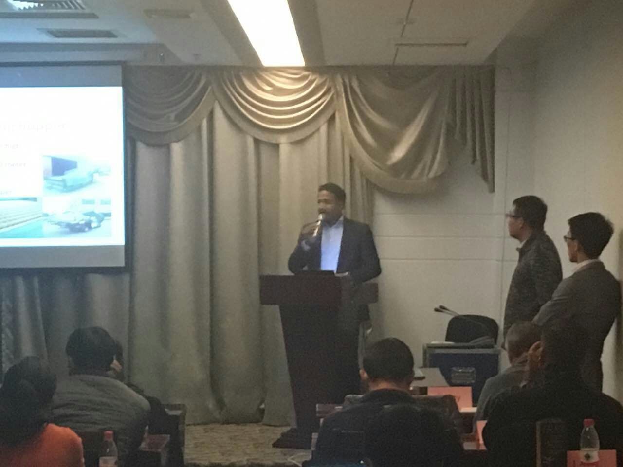 荷兰普林森公司销售经理弗兰克Frank Prinsen介绍装仓、装箱、出仓、倒箱设备