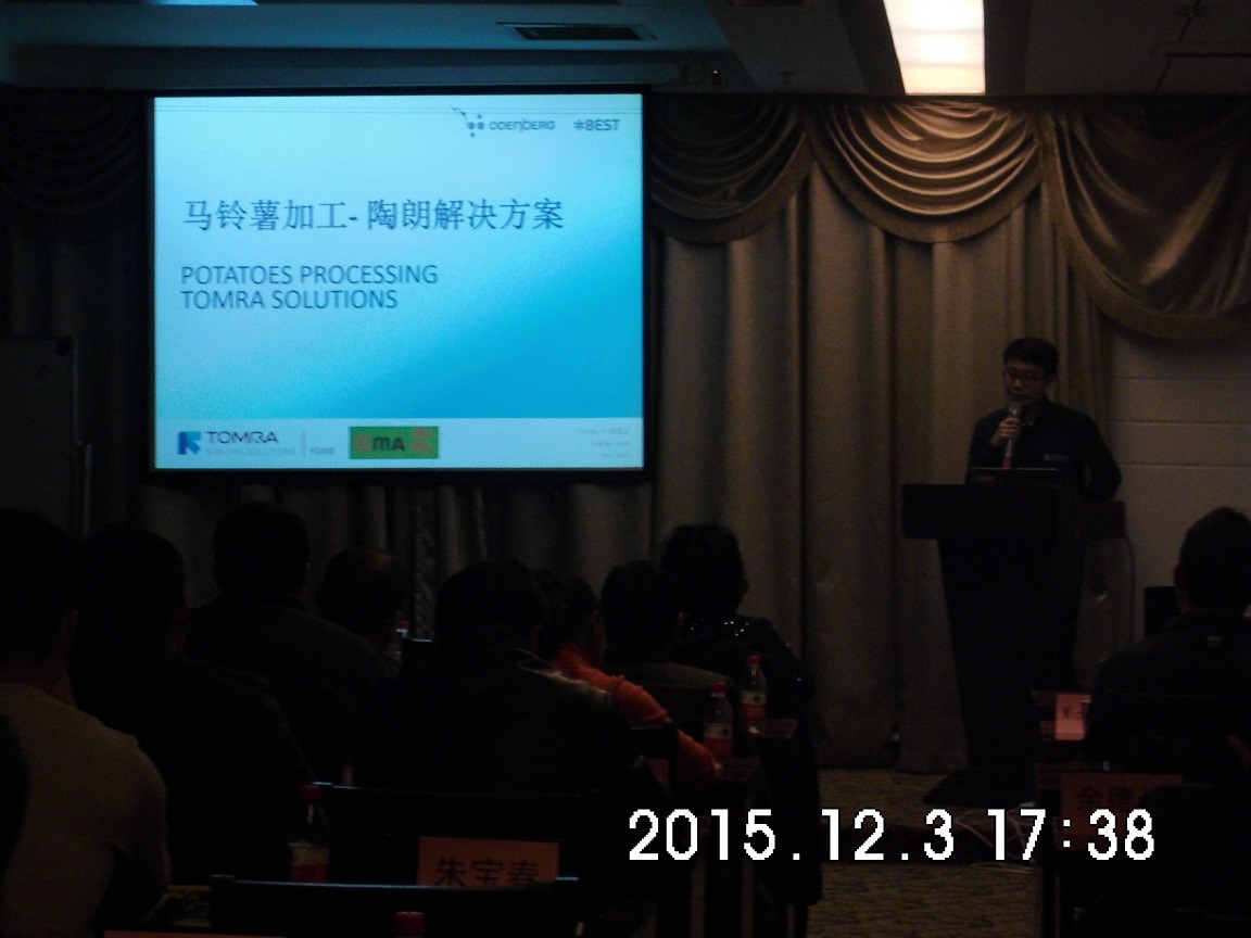 陶郎集团区域销售经理余德云介绍先进的蒸汽去皮线及光学分选设备